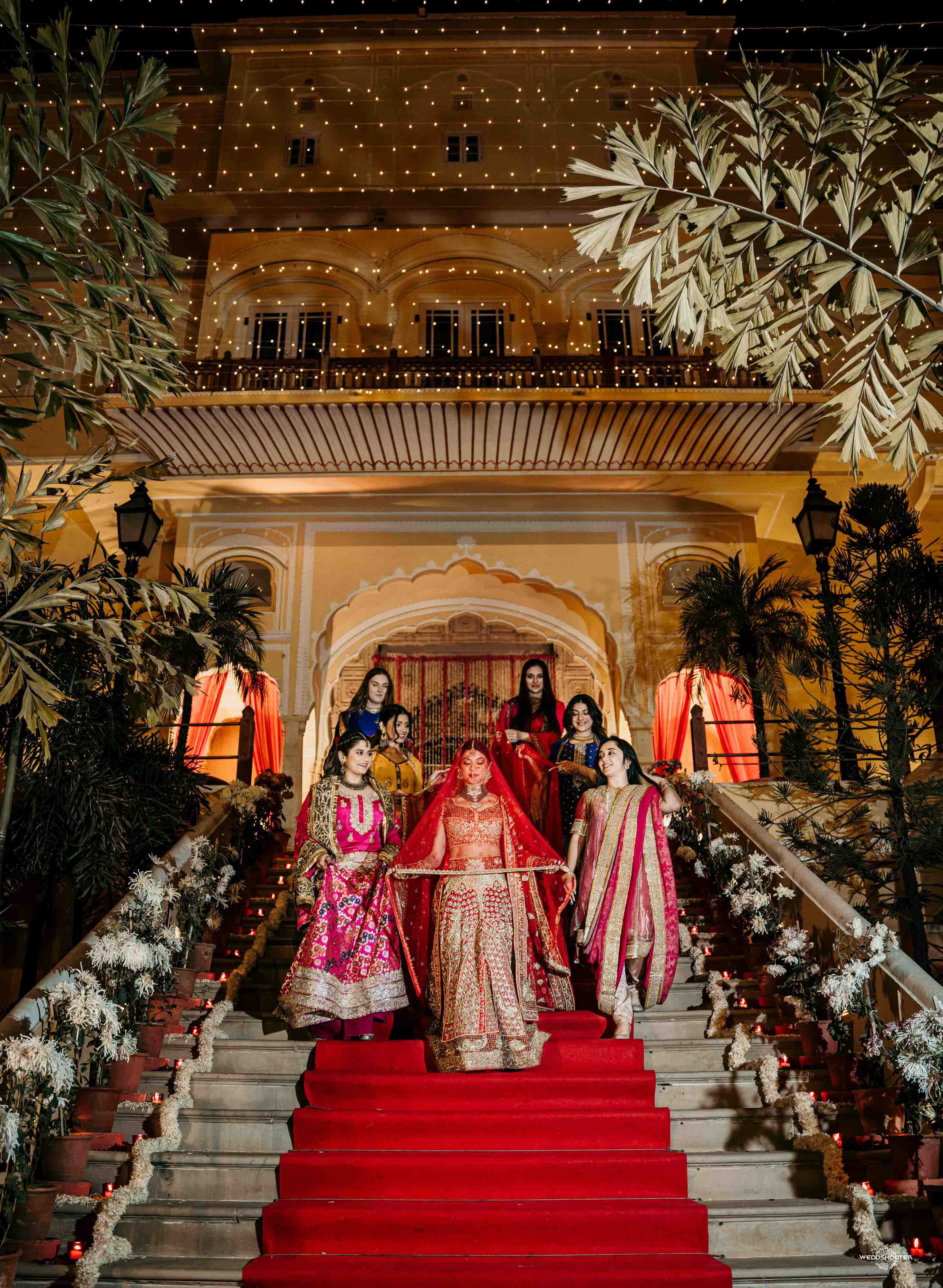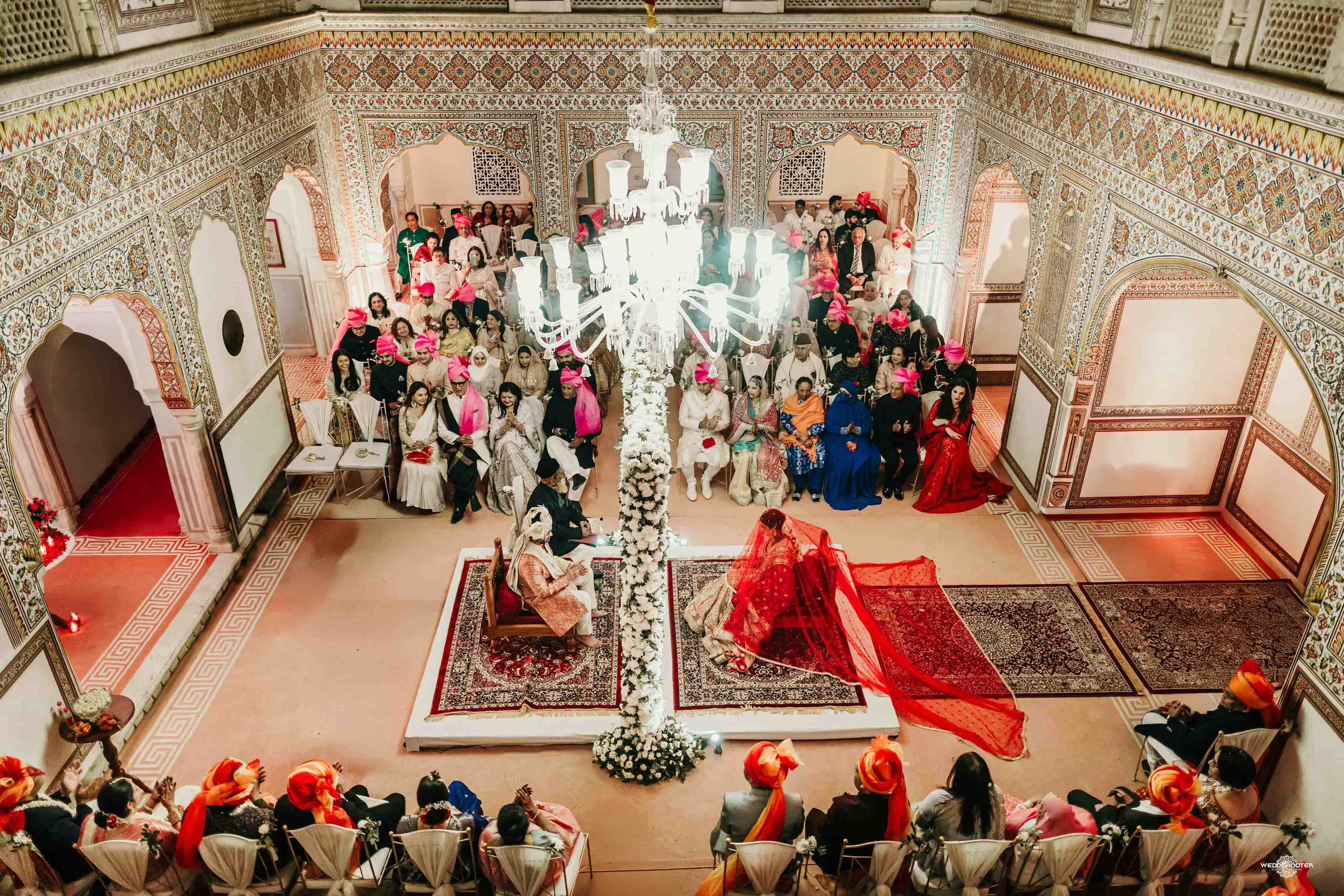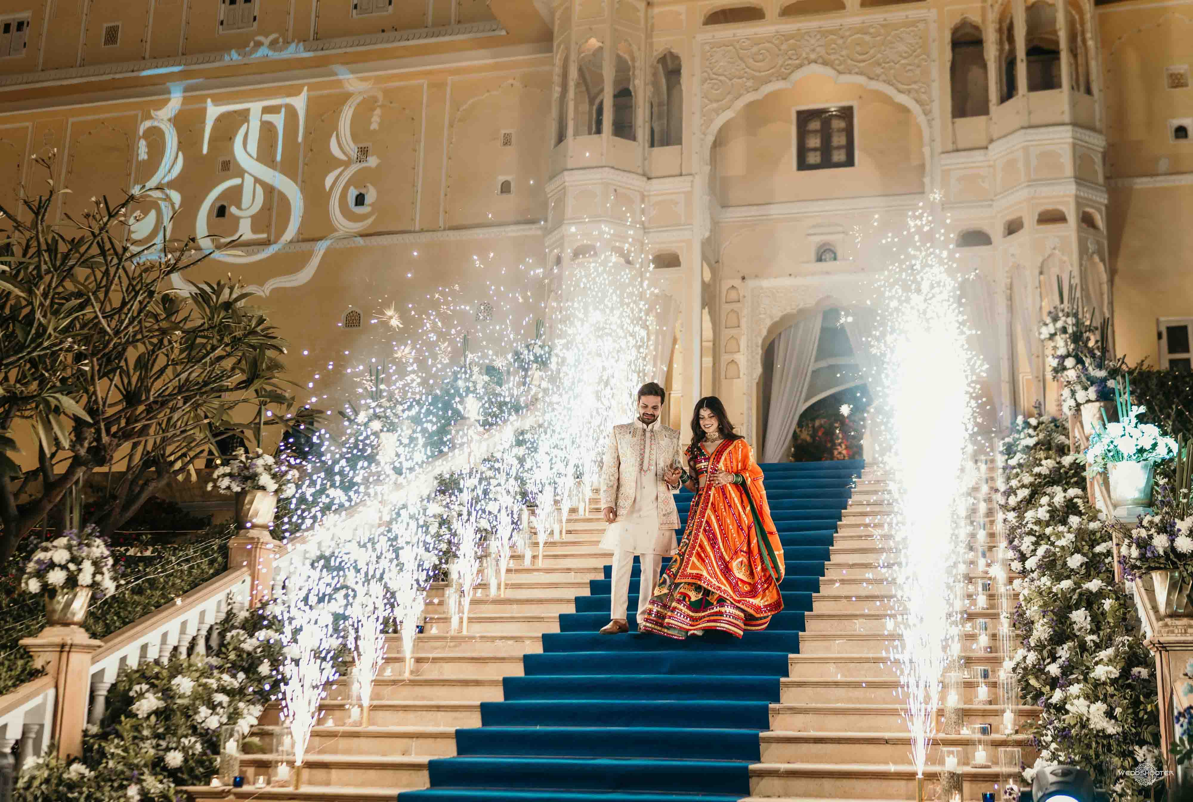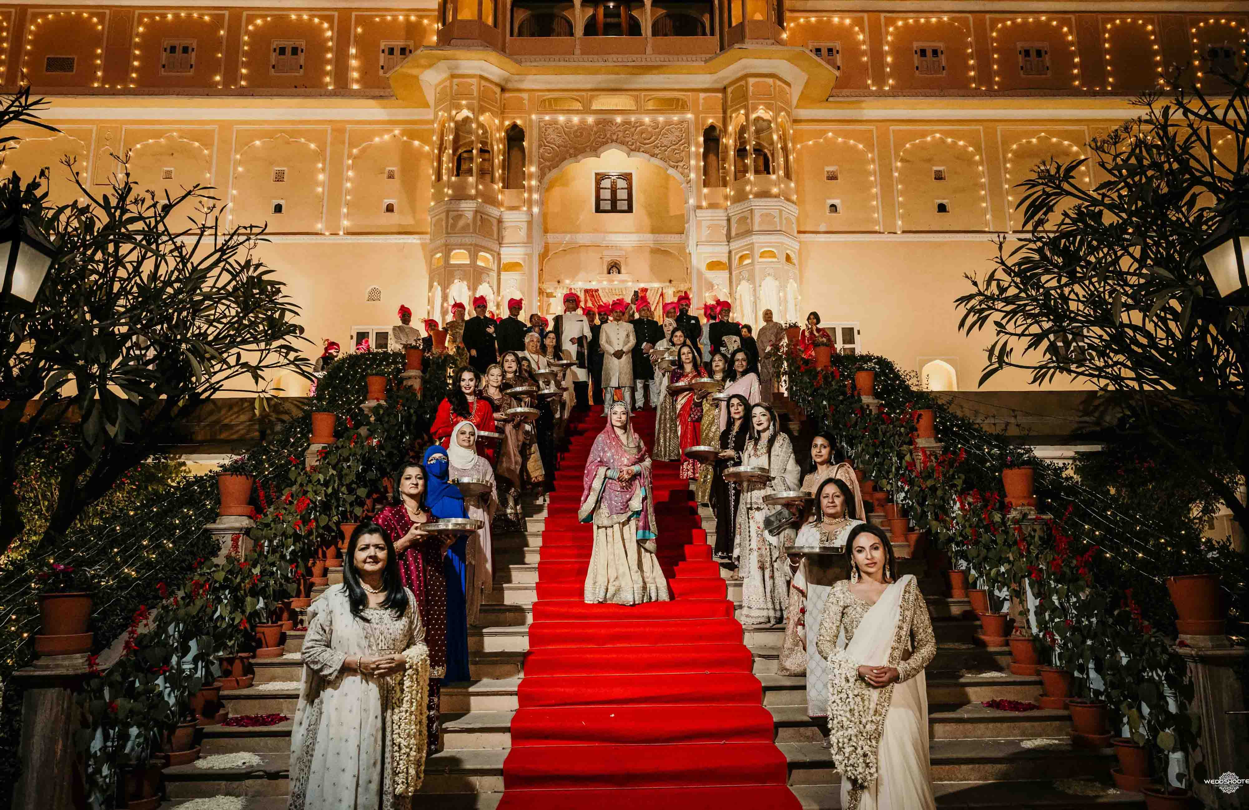 The stunning architecture of Samode Palace, with its intricate frescoes and majestic courtyards, provided the perfect canvas for this love story. Adorned in exquisite attire, Sara and Tariq exchanged vows in a setting that felt like a scene from a royal fairytale.