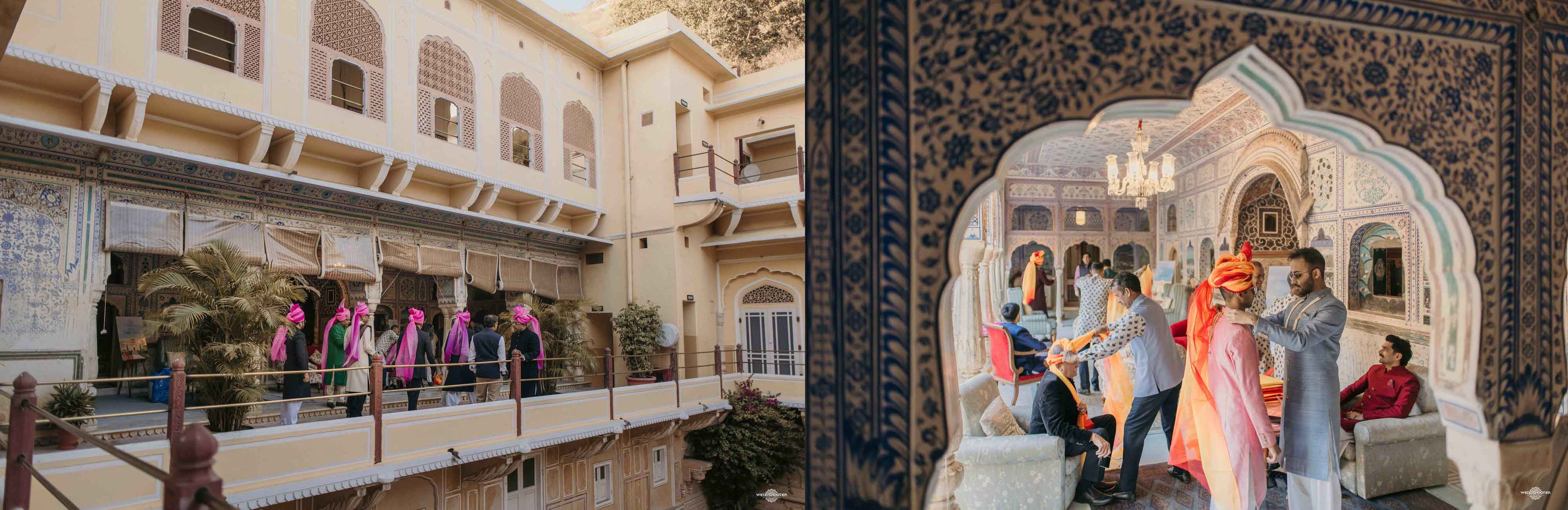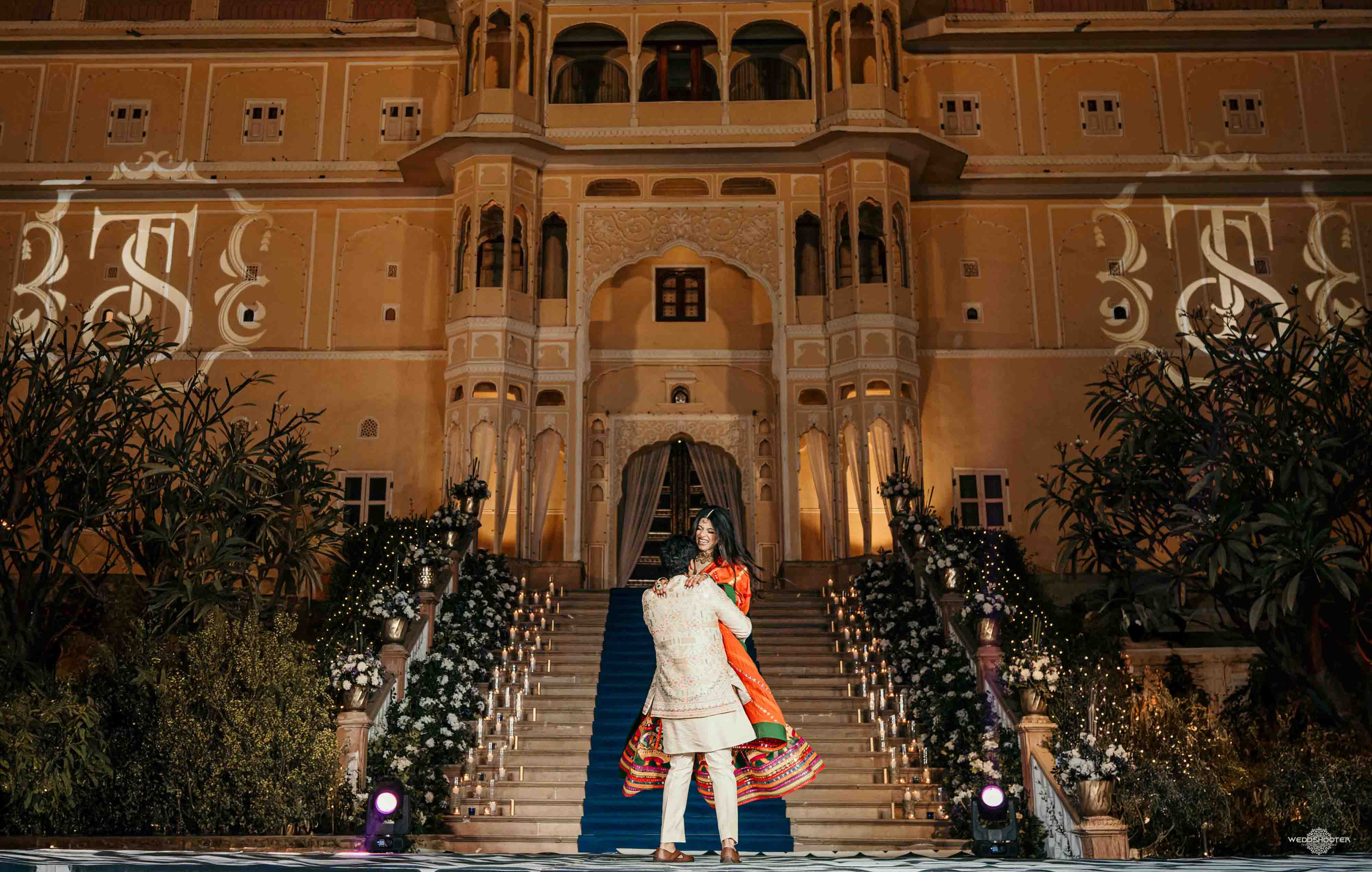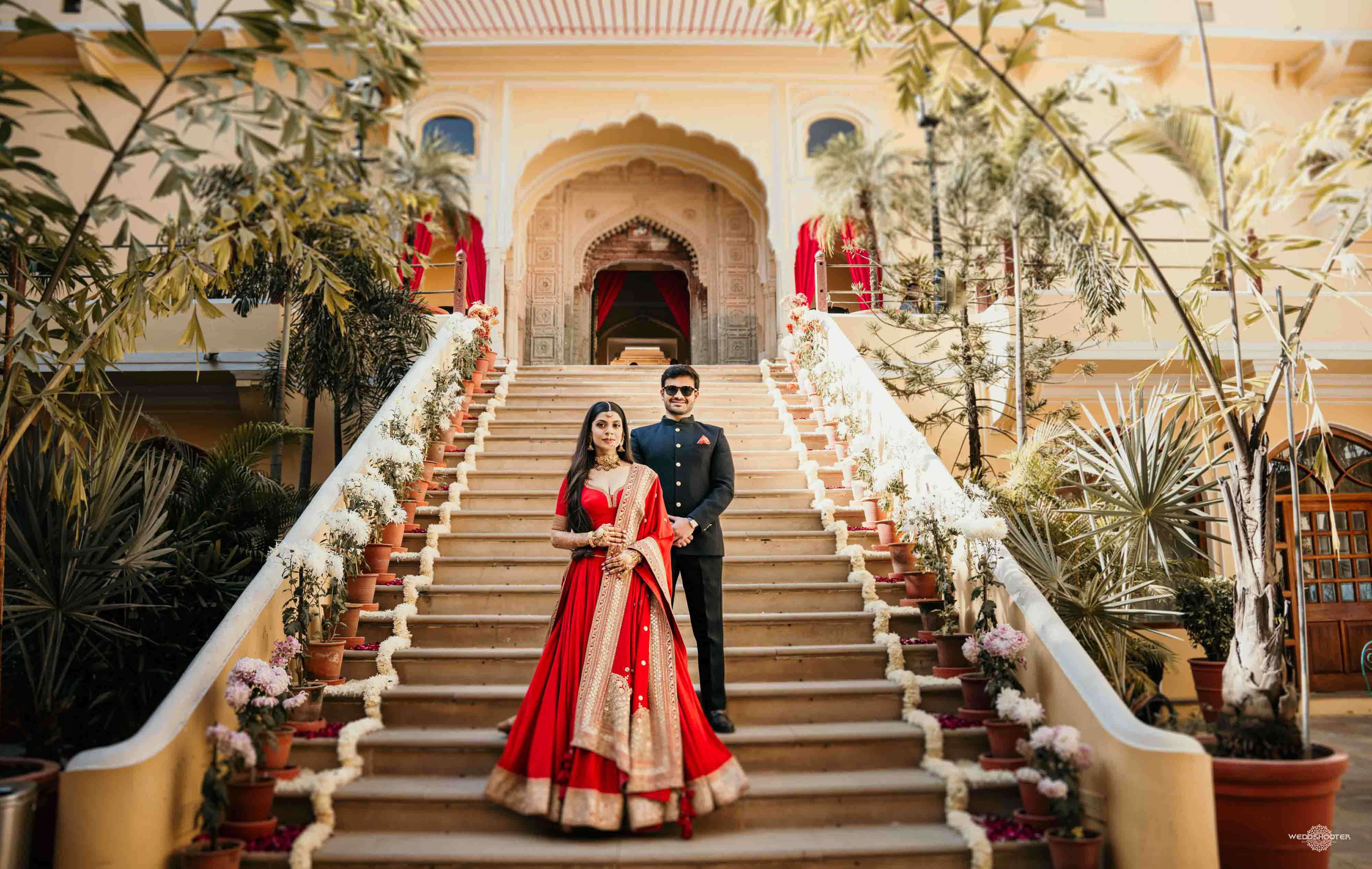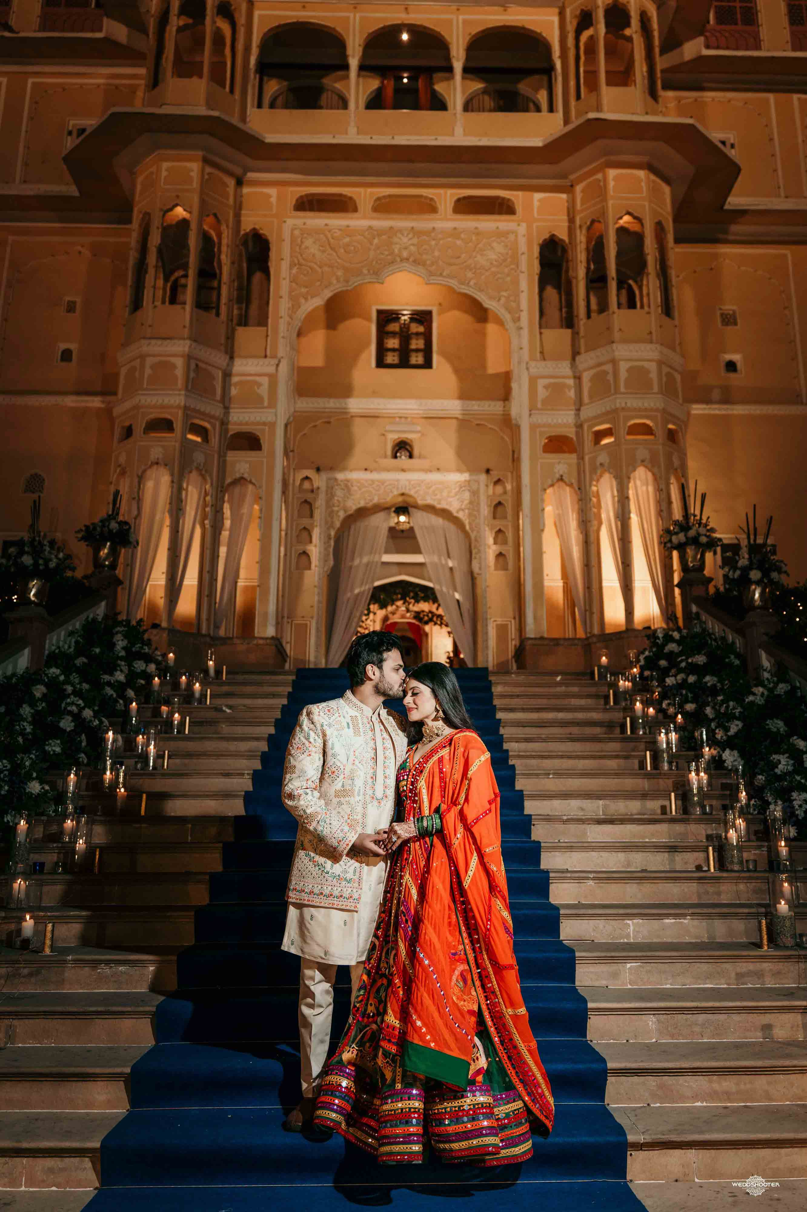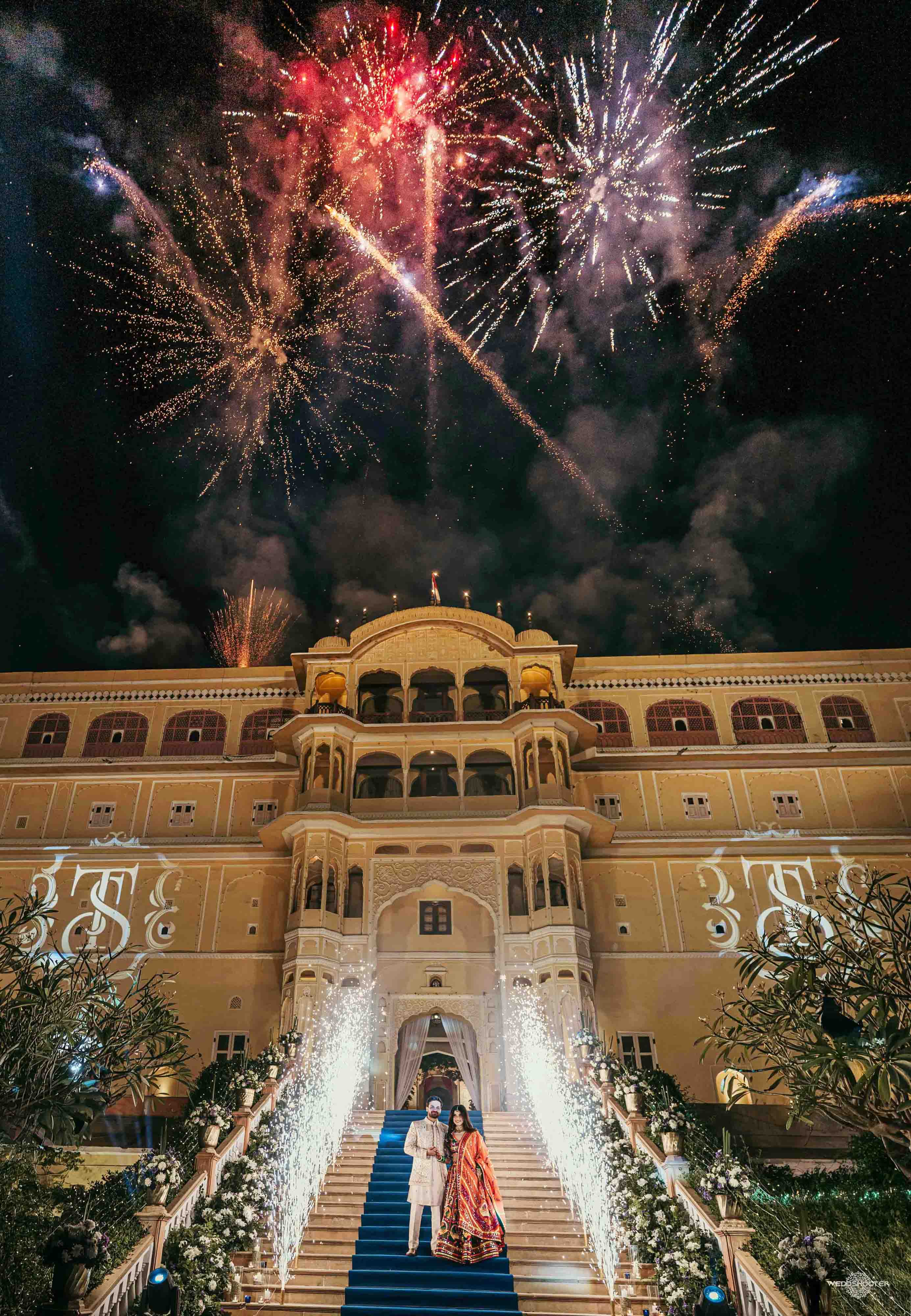 The stunning architecture of Samode Palace, with its intricate frescoes and majestic courtyards, provided the perfect canvas for this love story. Adorned in exquisite attire, Sara and Tariq exchanged vows in a setting that felt like a scene from a royal fairytale.