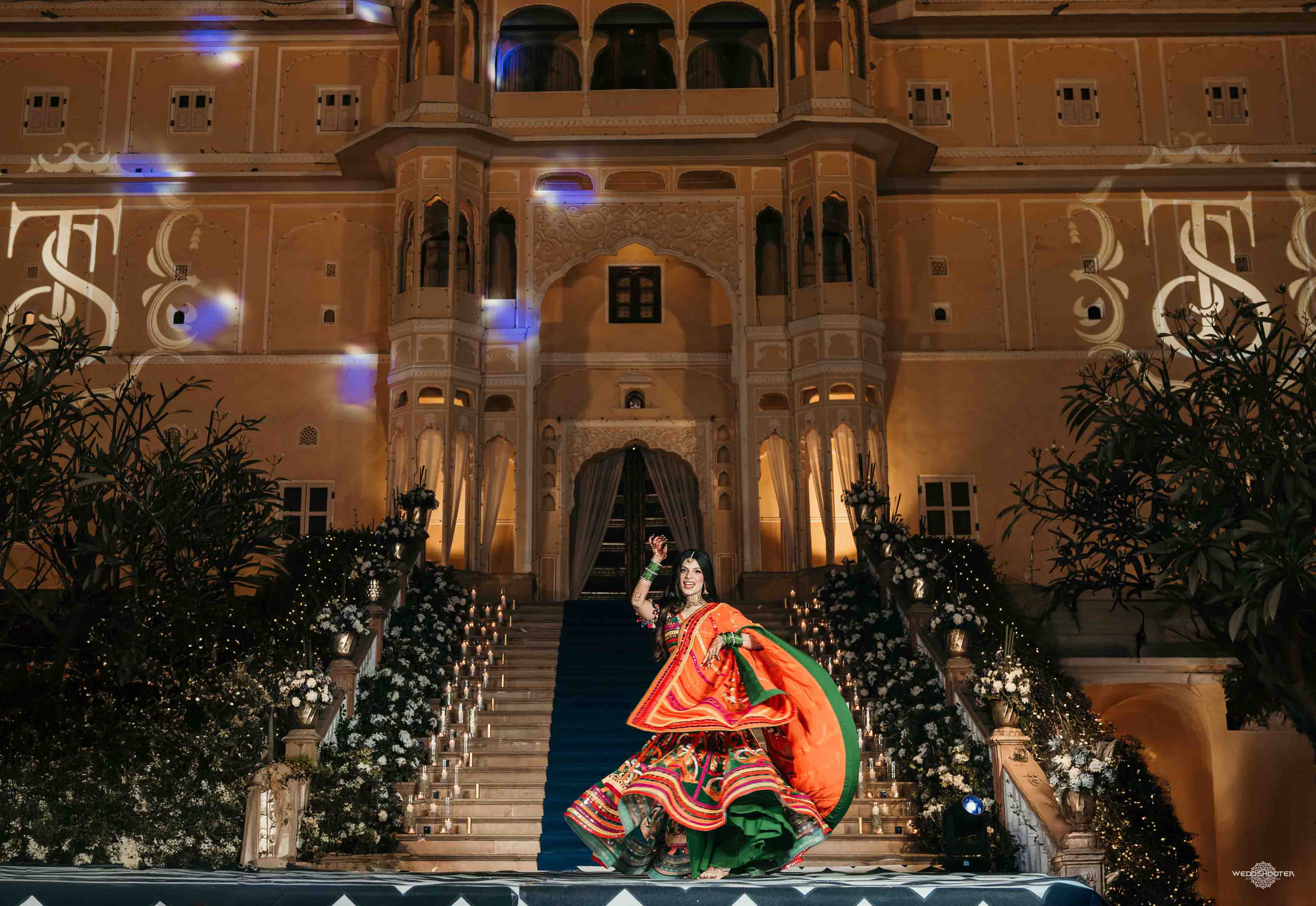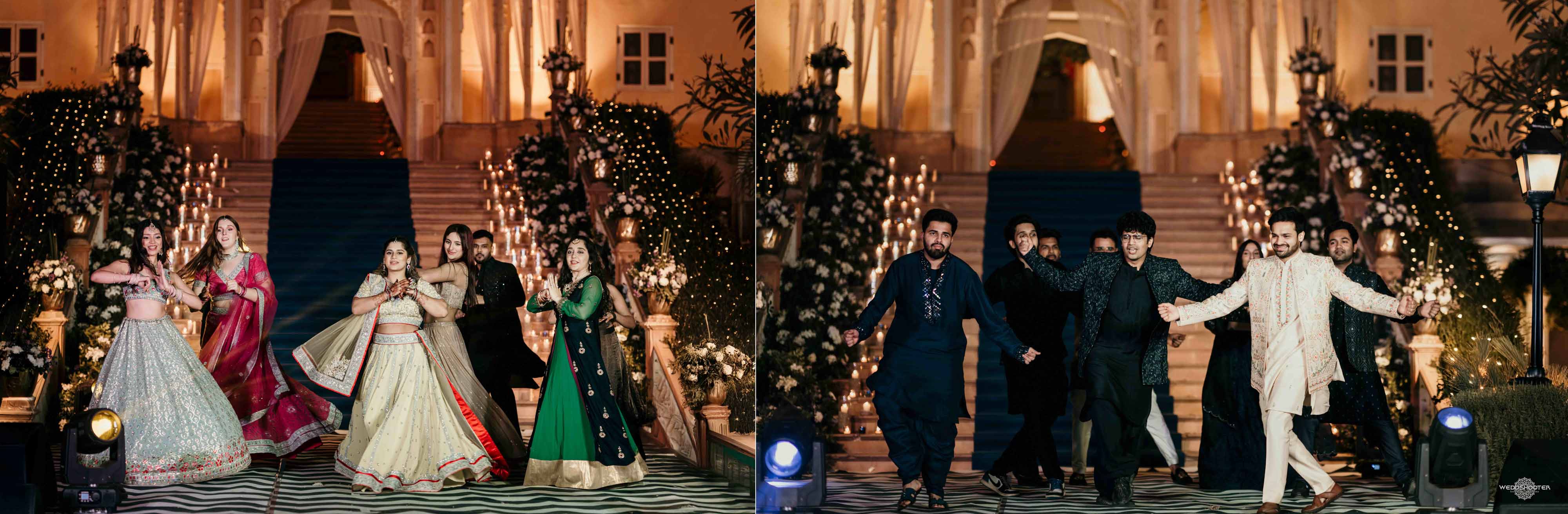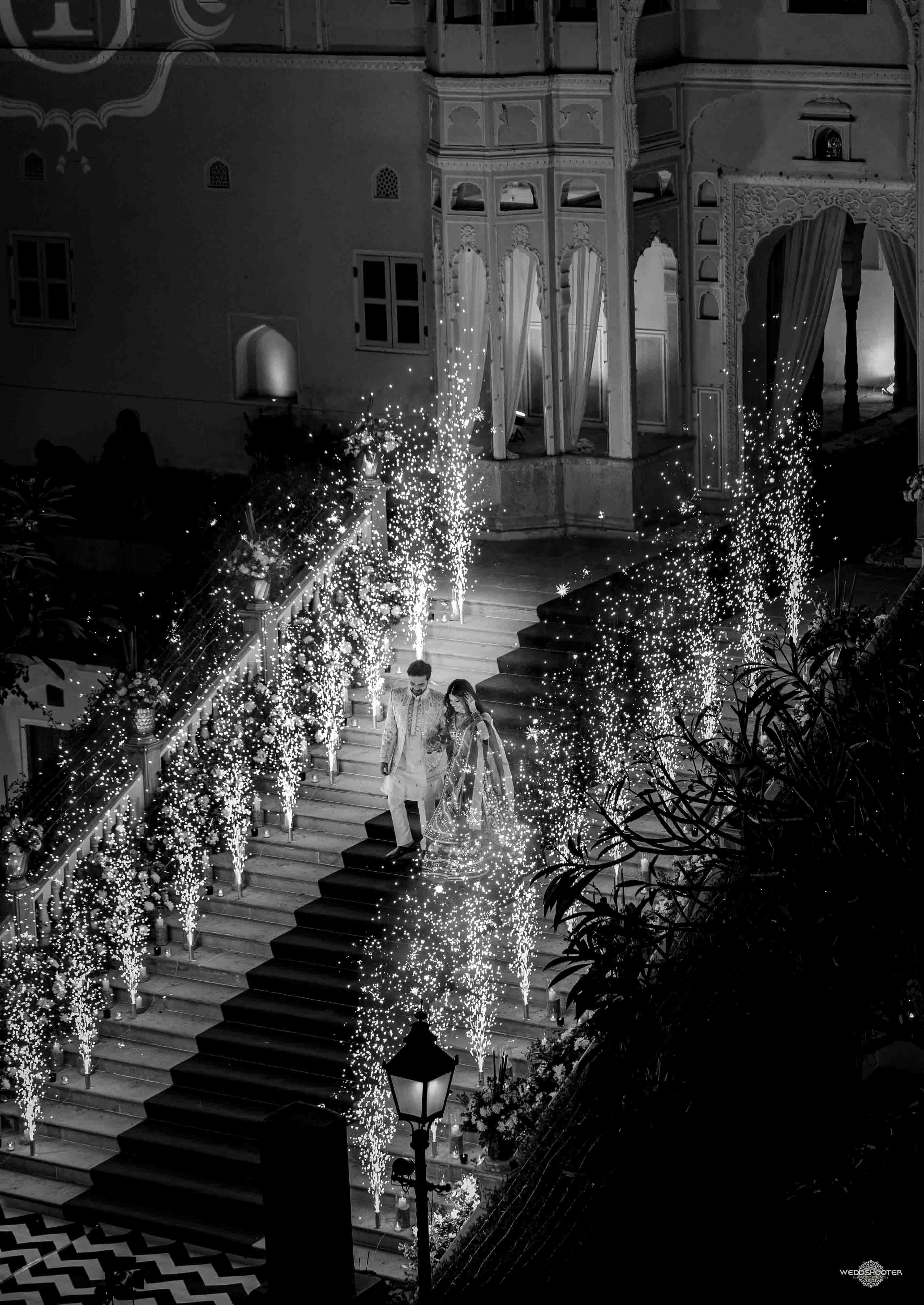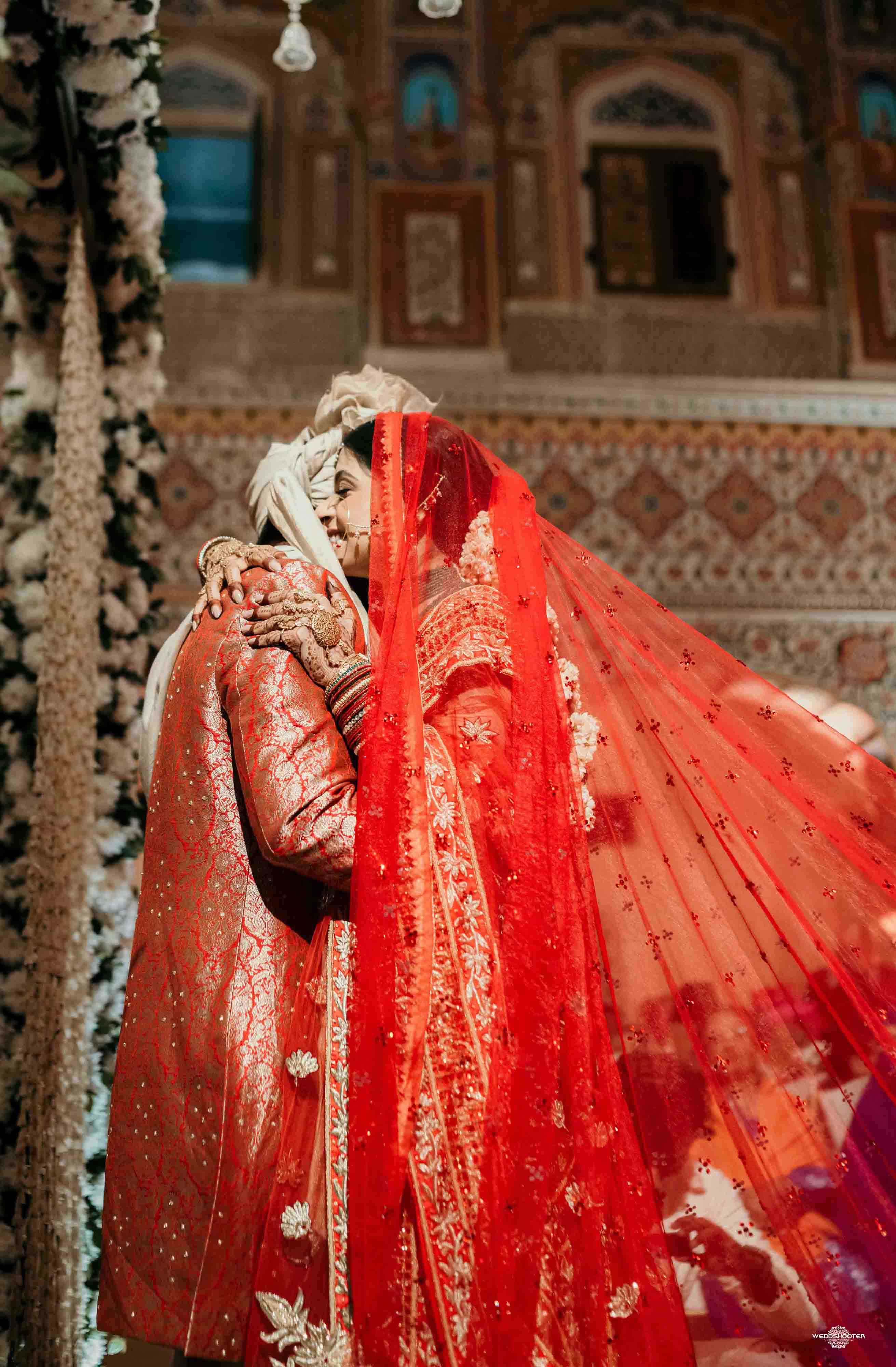 The stunning architecture of Samode Palace, with its intricate frescoes and majestic courtyards, provided the perfect canvas for this love story. Adorned in exquisite attire, Sara and Tariq exchanged vows in a setting that felt like a scene from a royal fairytale.