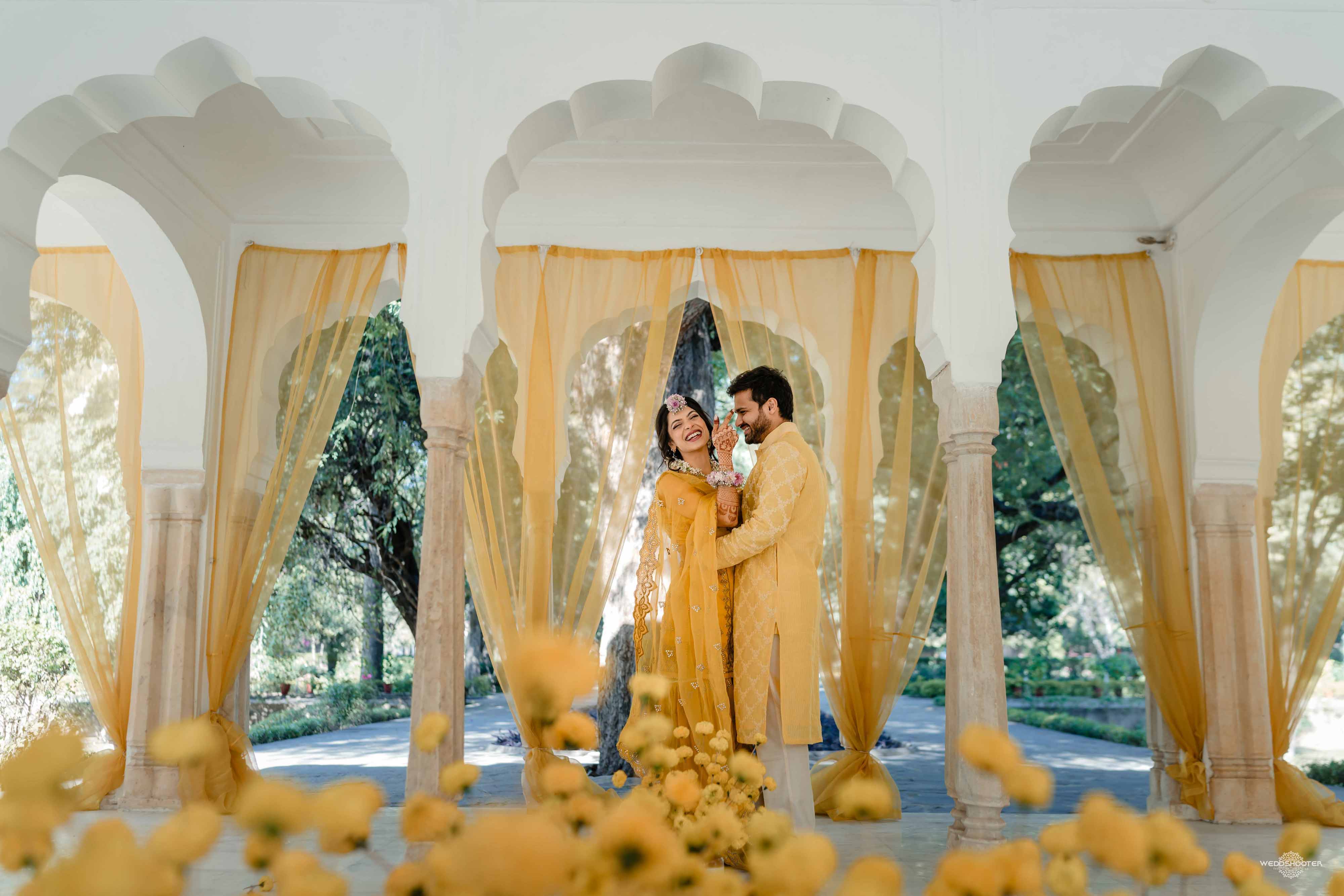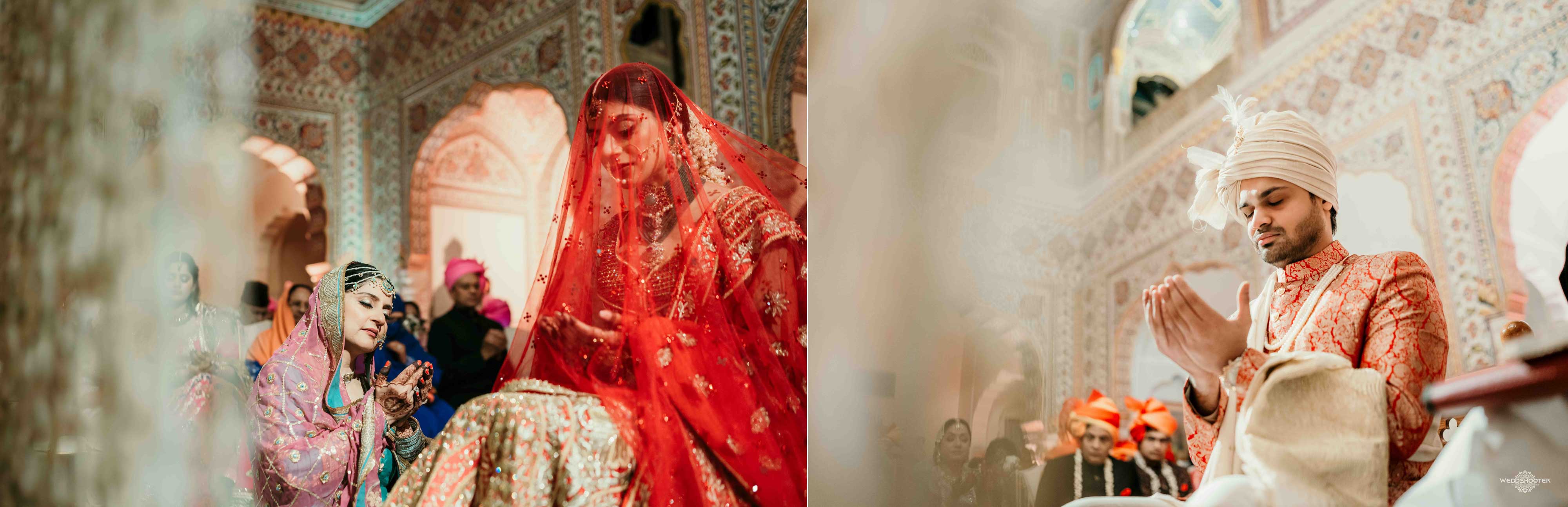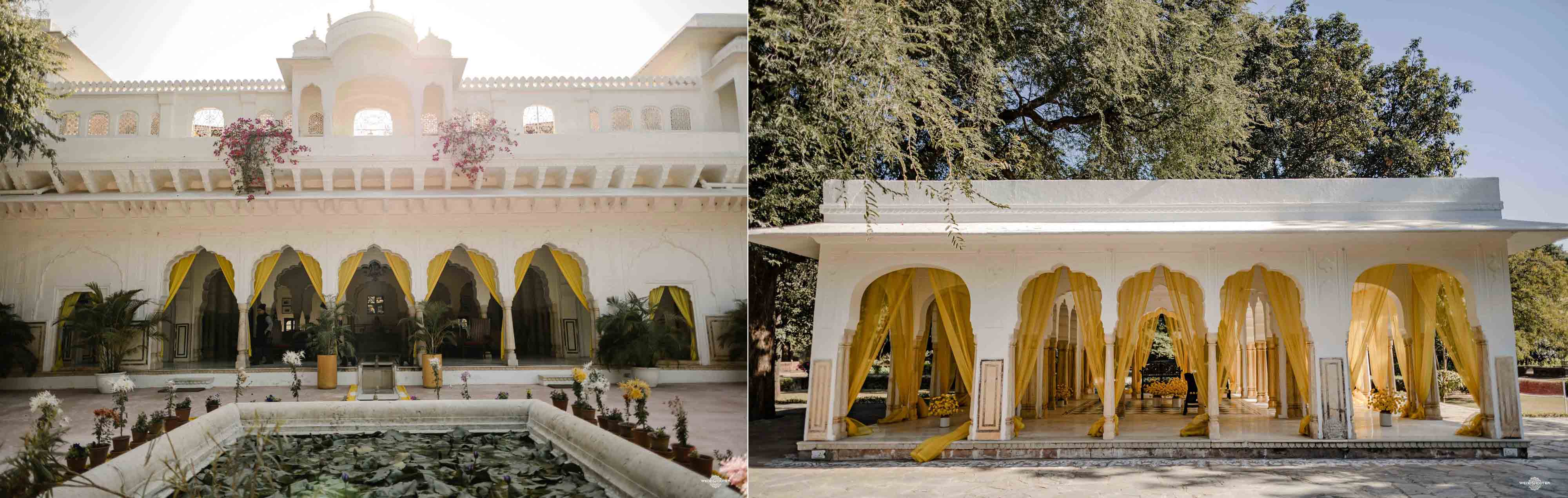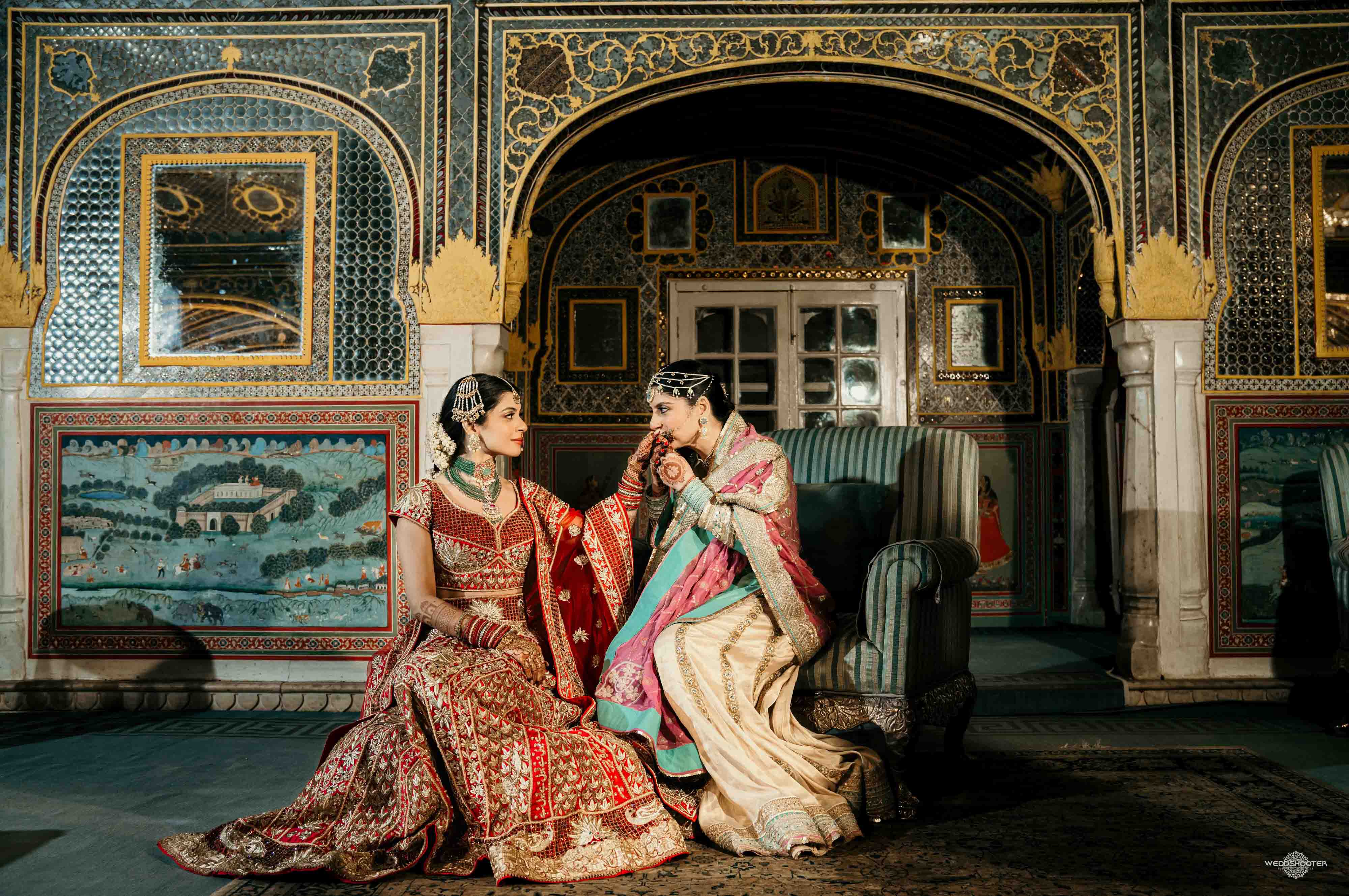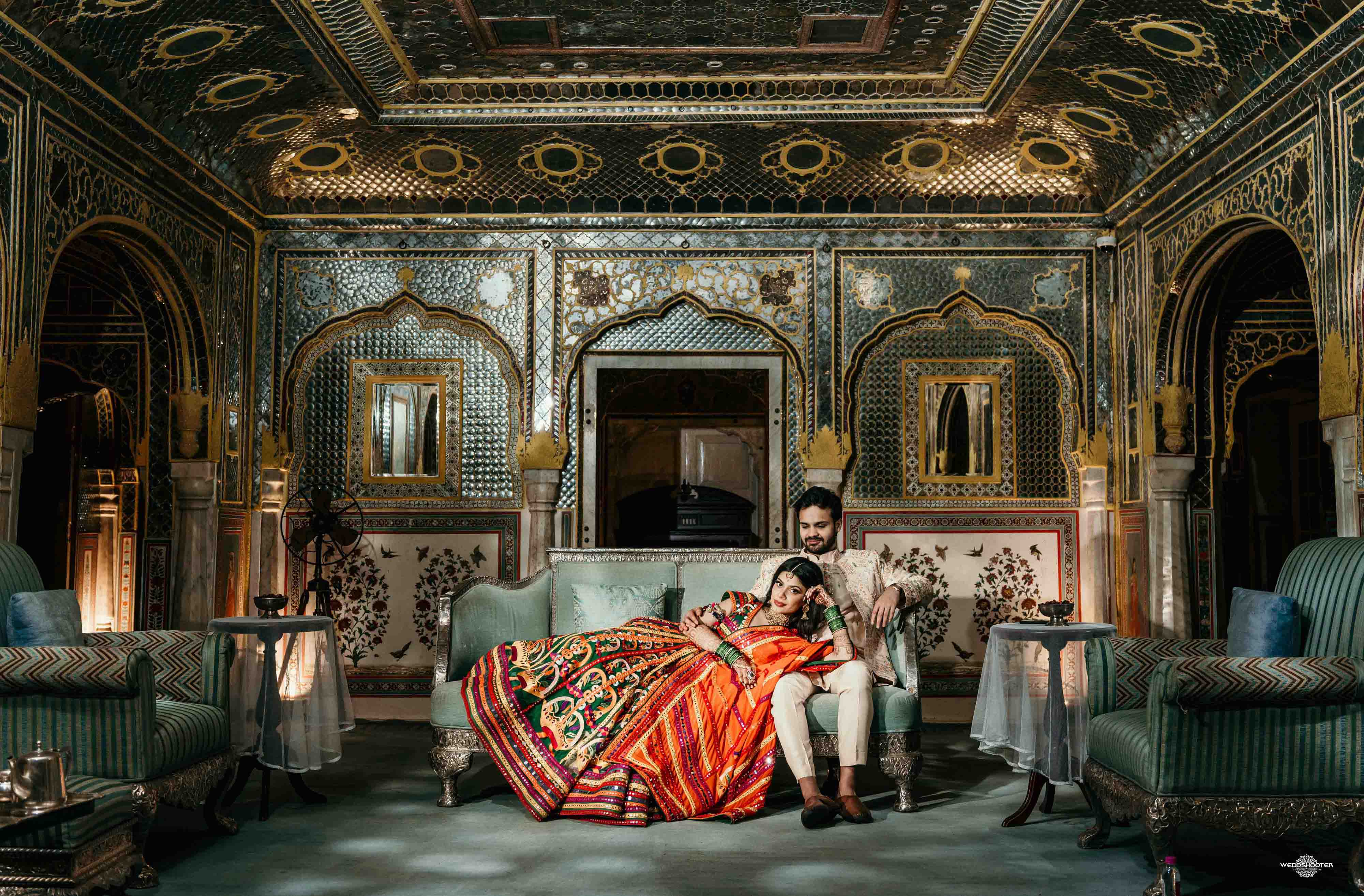 The stunning architecture of Samode Palace, with its intricate frescoes and majestic courtyards, provided the perfect canvas for this love story. Adorned in exquisite attire, Sara and Tariq exchanged vows in a setting that felt like a scene from a royal fairytale.