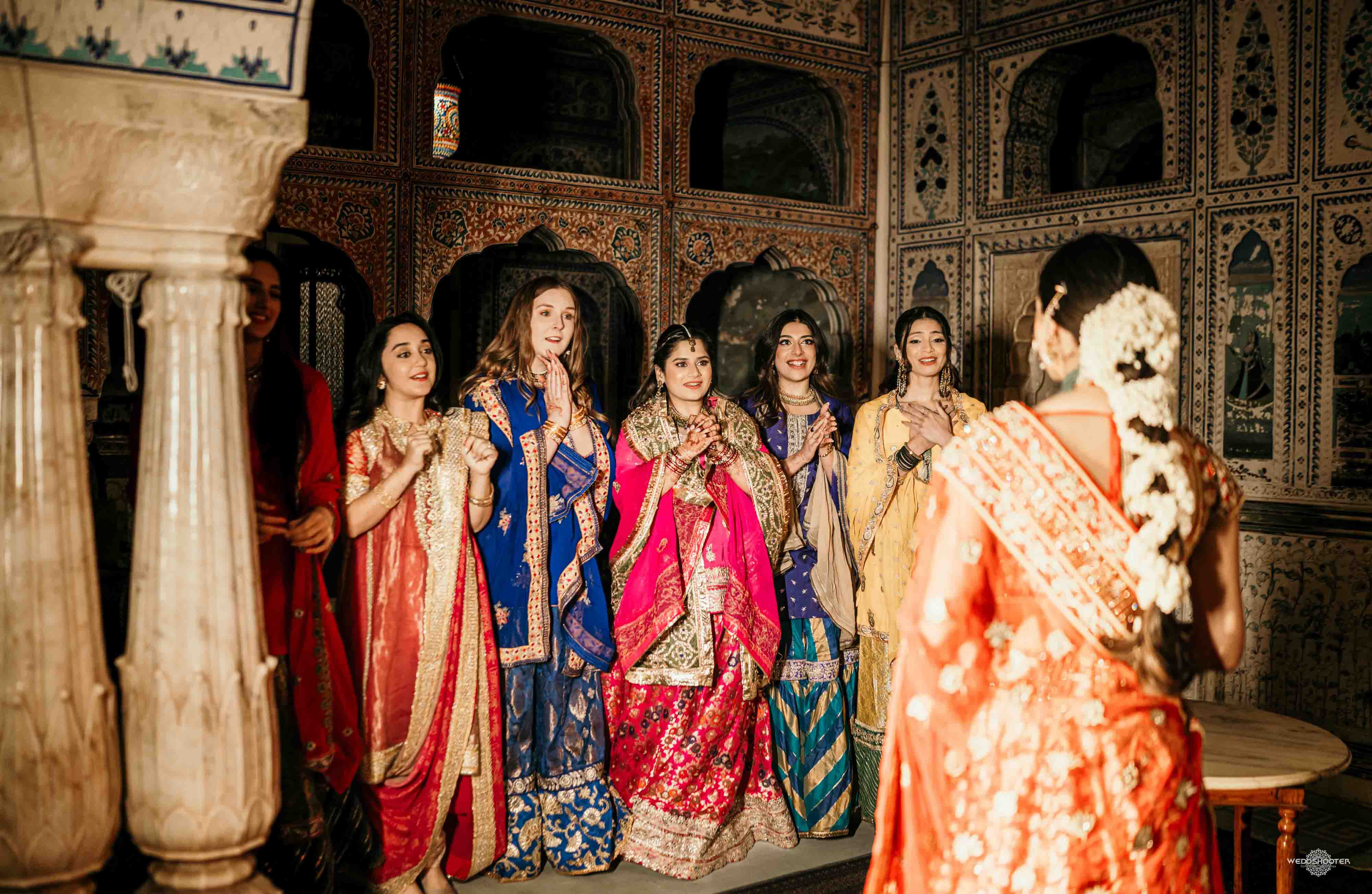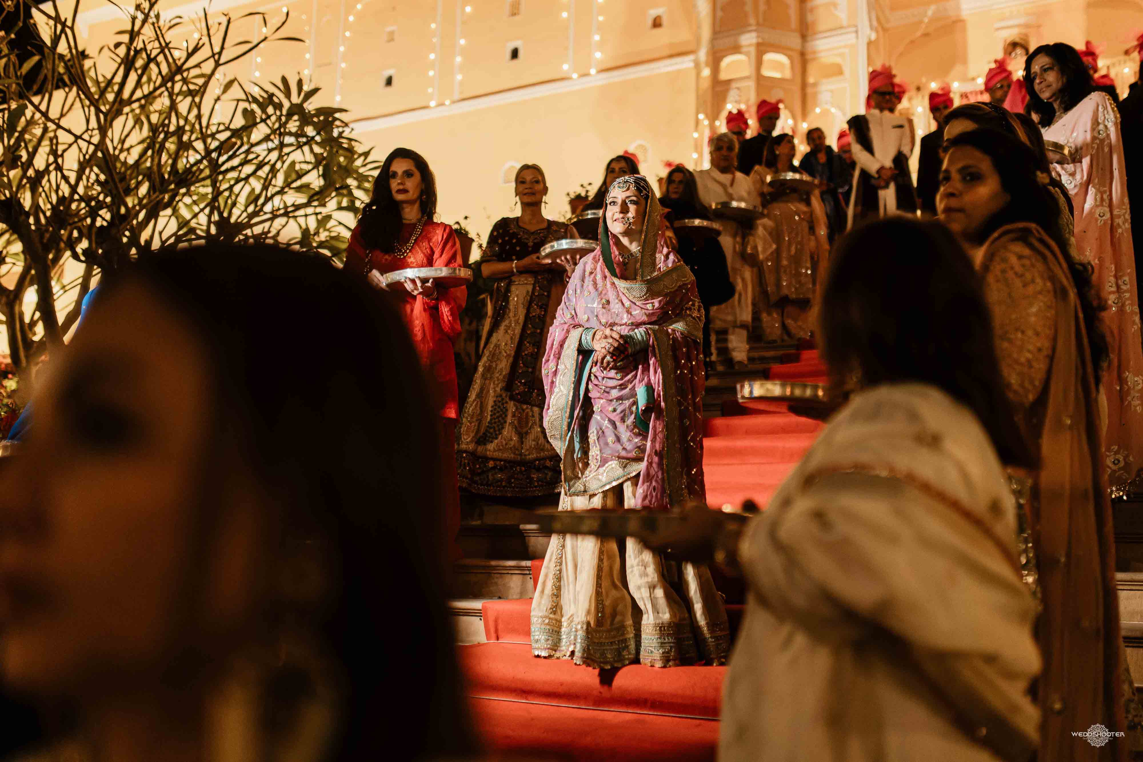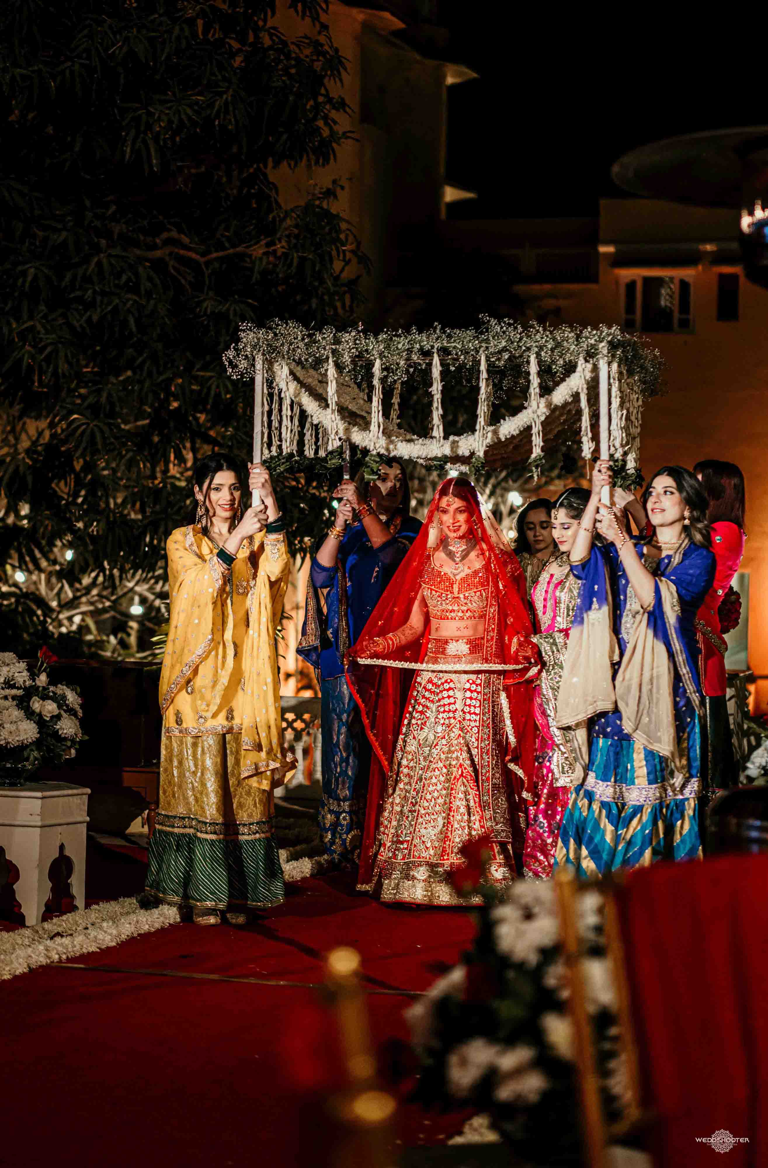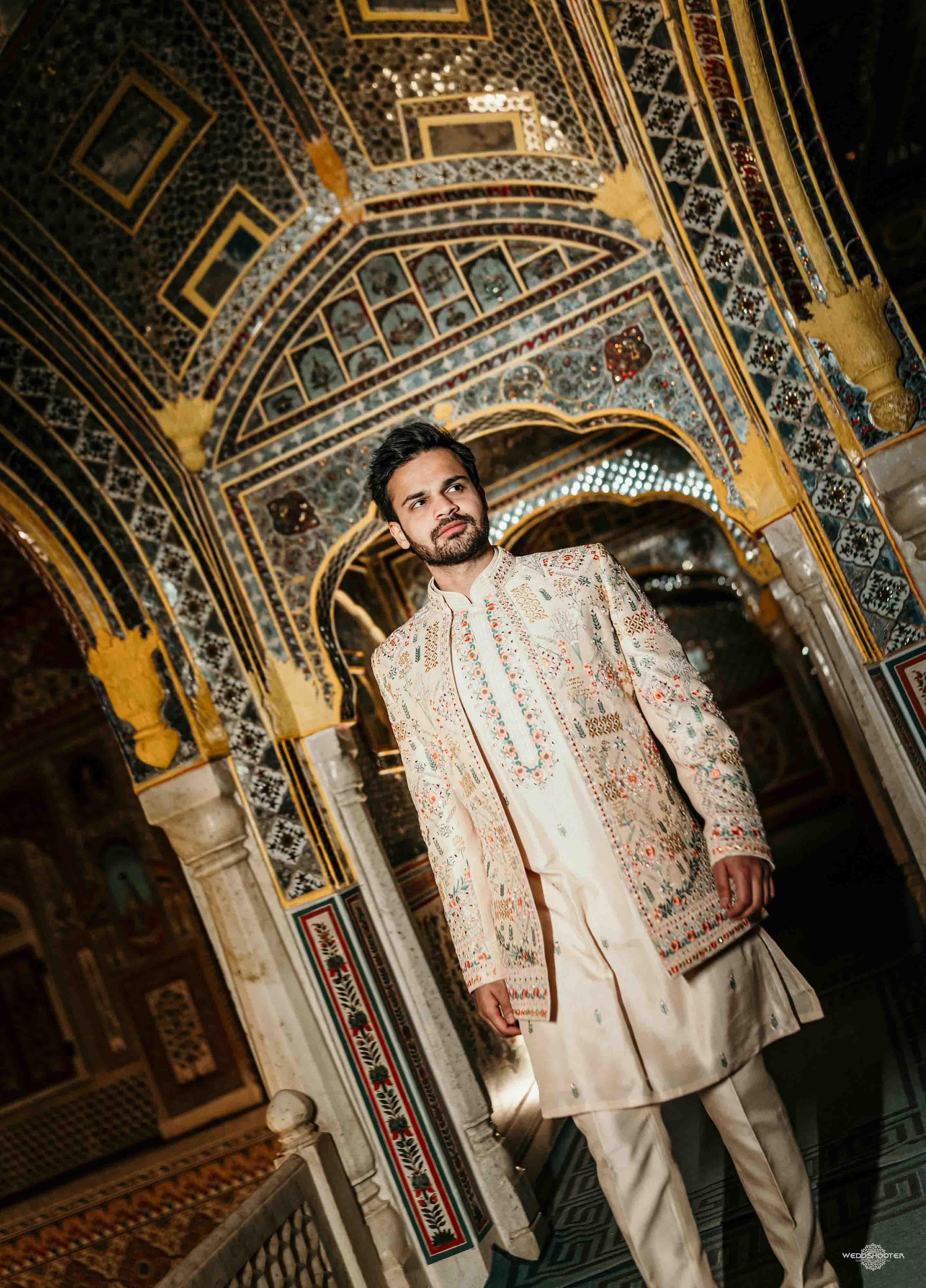 The stunning architecture of Samode Palace, with its intricate frescoes and majestic courtyards, provided the perfect canvas for this love story. Adorned in exquisite attire, Sara and Tariq exchanged vows in a setting that felt like a scene from a royal fairytale.
