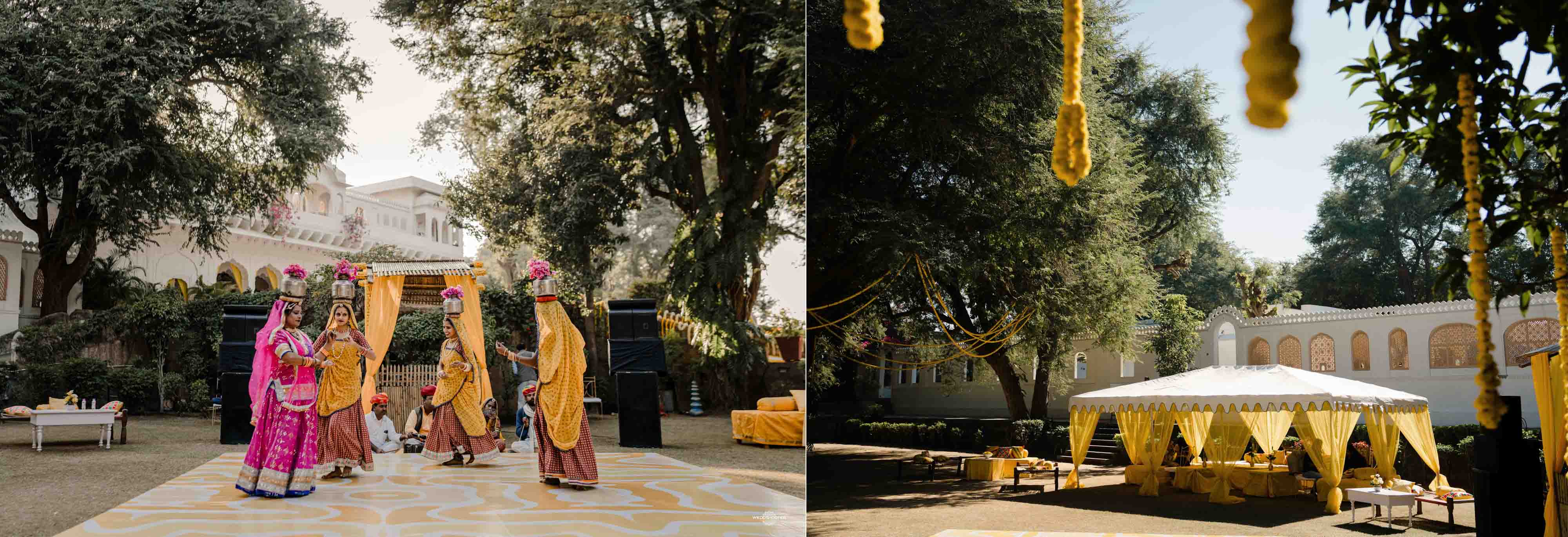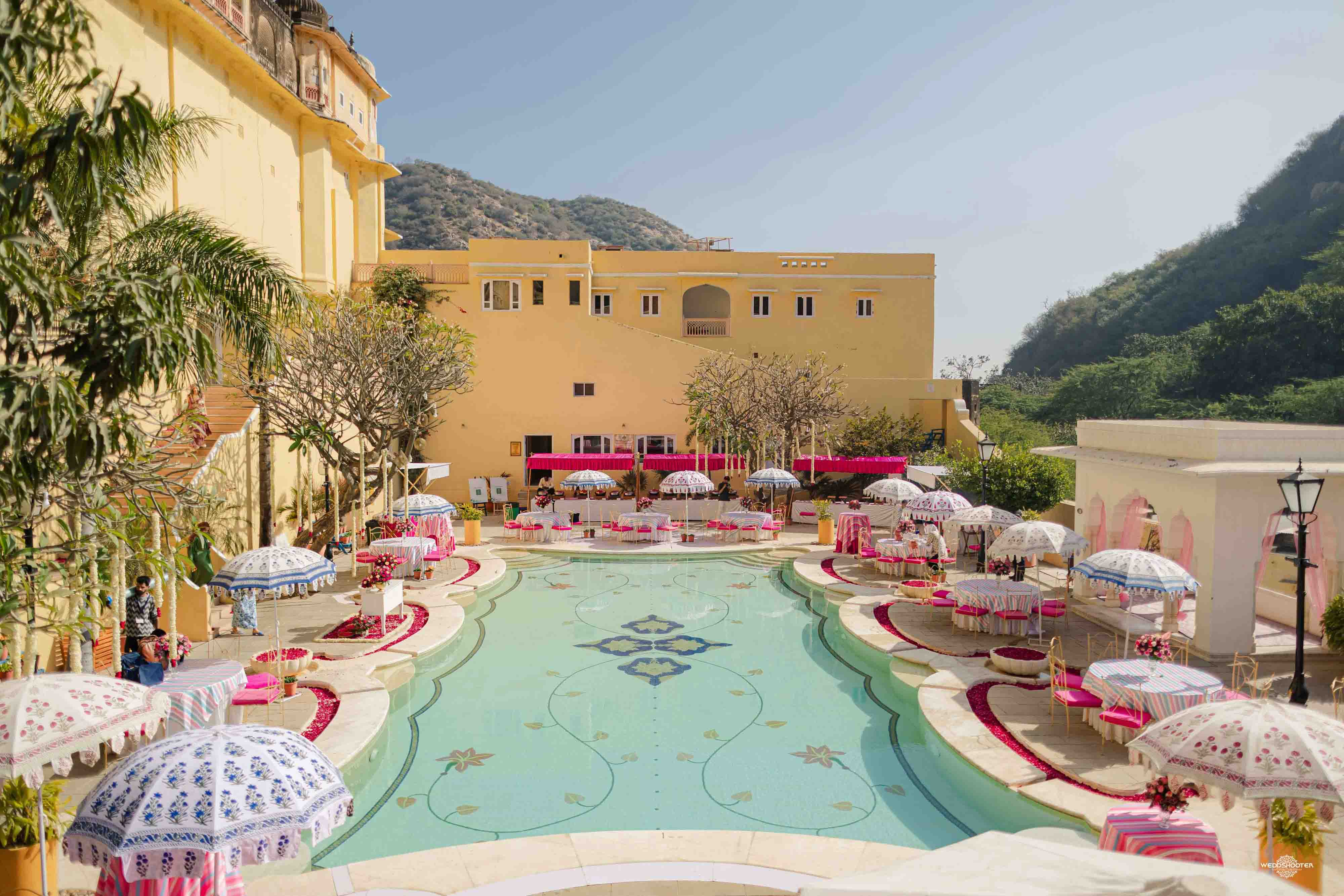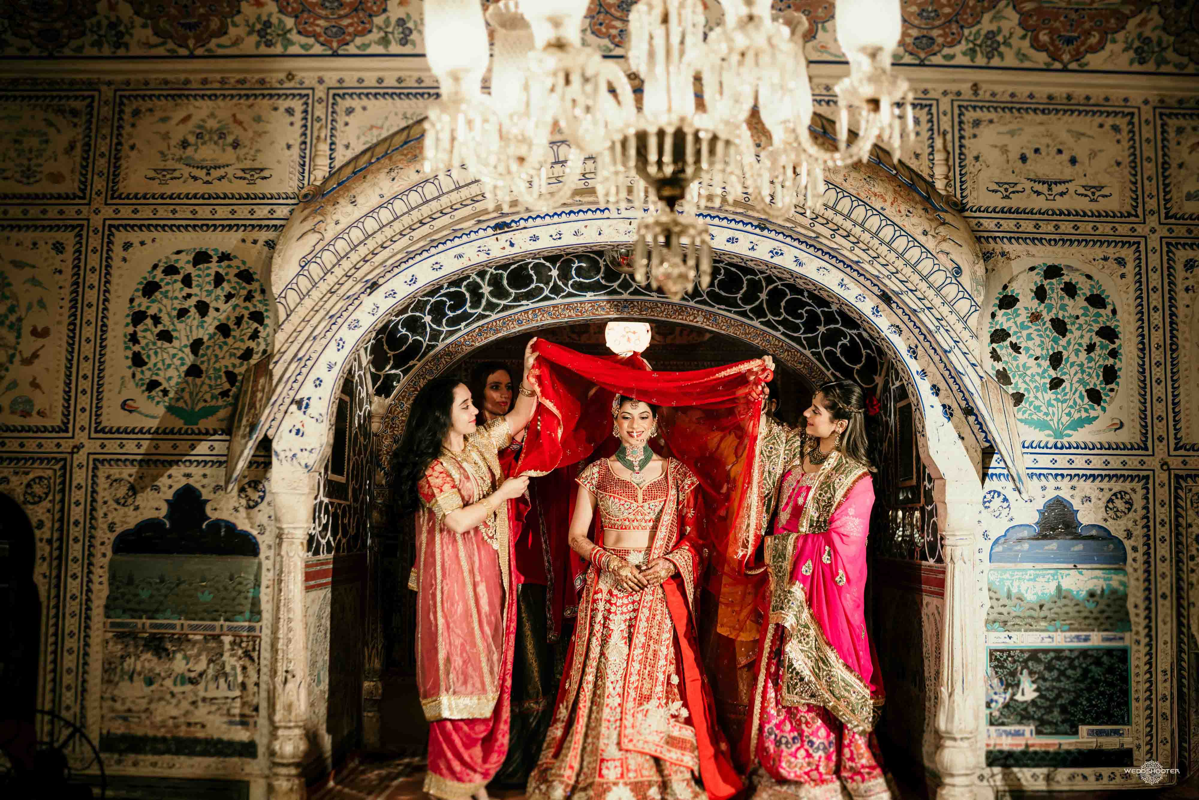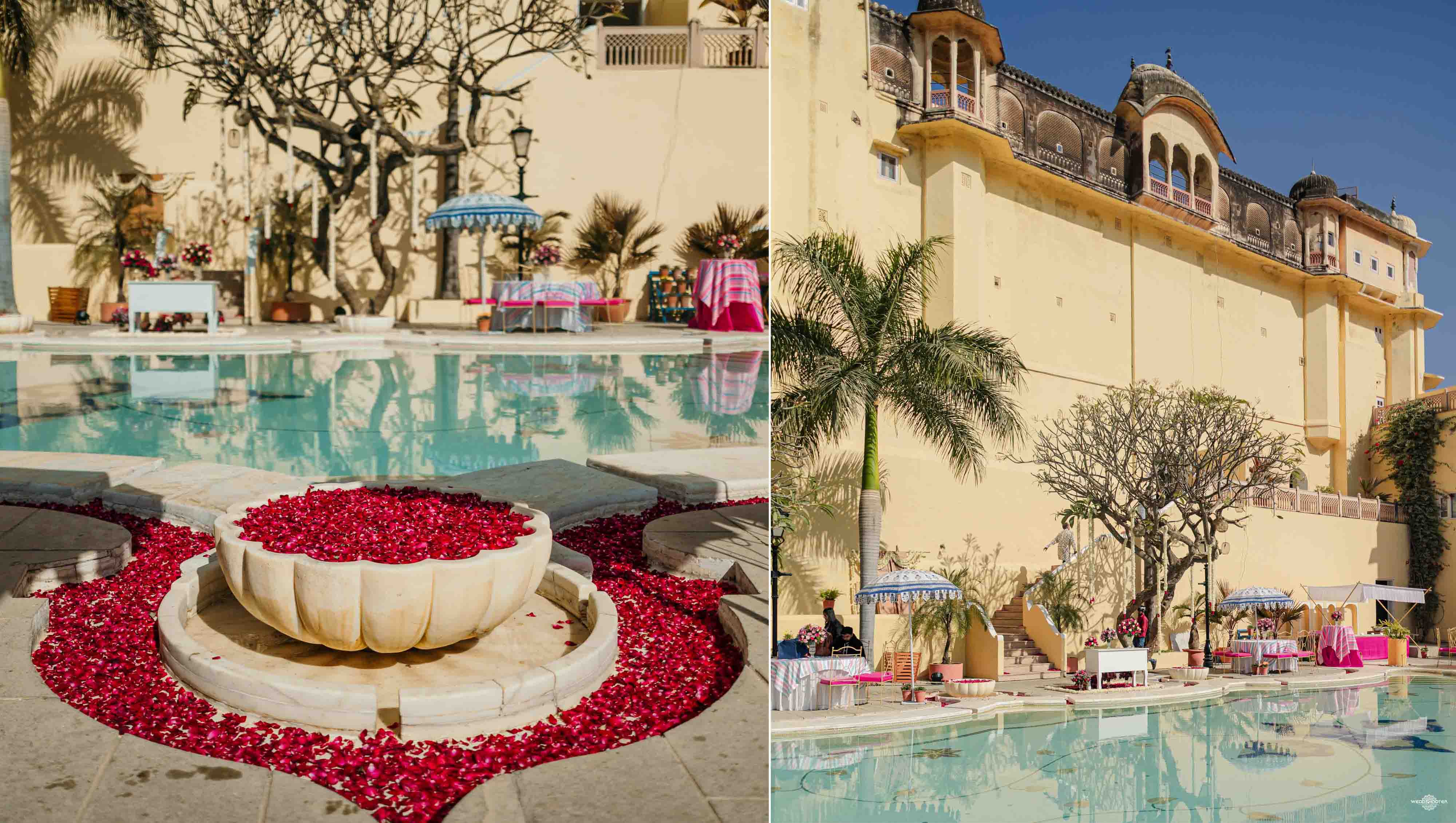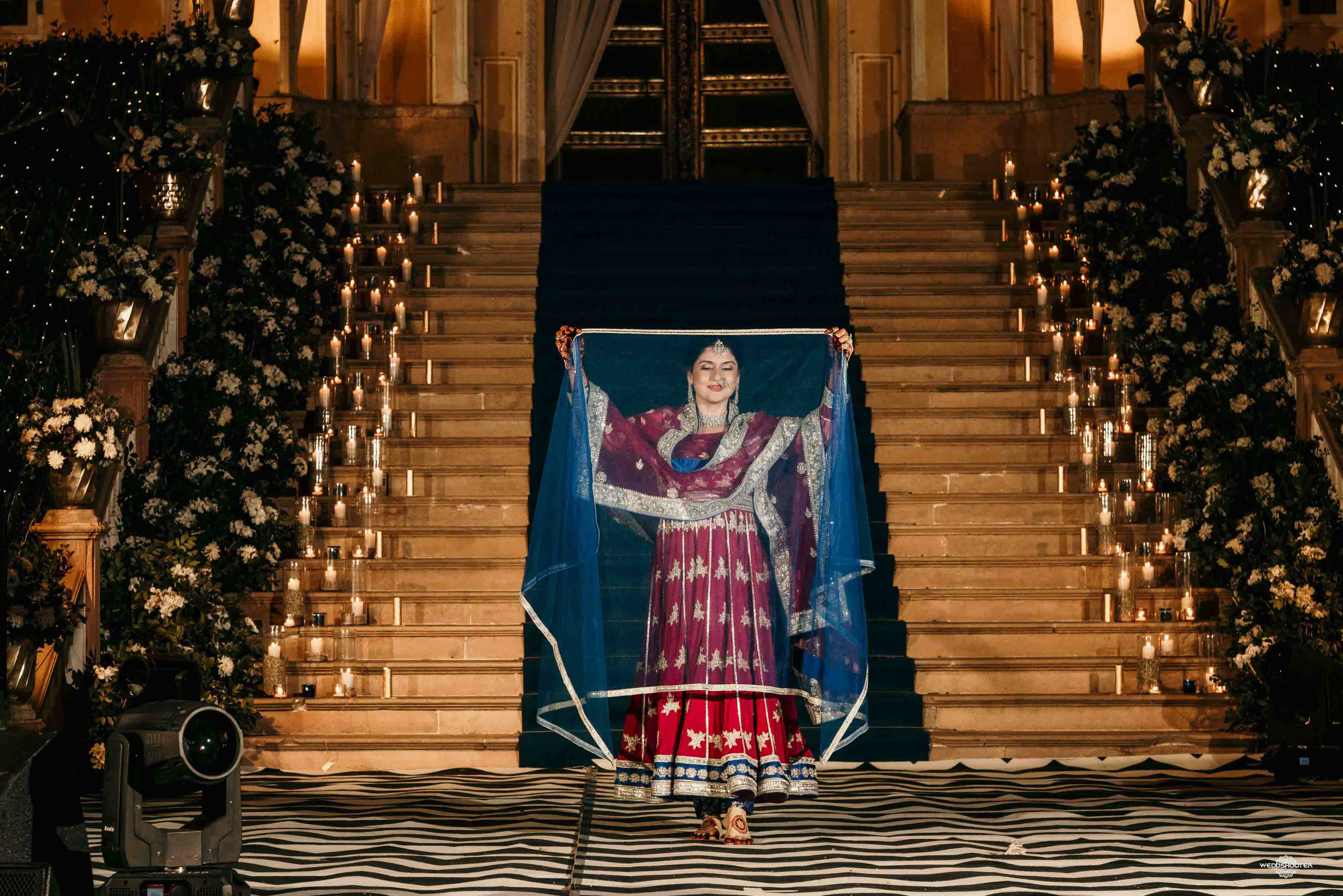 The stunning architecture of Samode Palace, with its intricate frescoes and majestic courtyards, provided the perfect canvas for this love story. Adorned in exquisite attire, Sara and Tariq exchanged vows in a setting that felt like a scene from a royal fairytale.